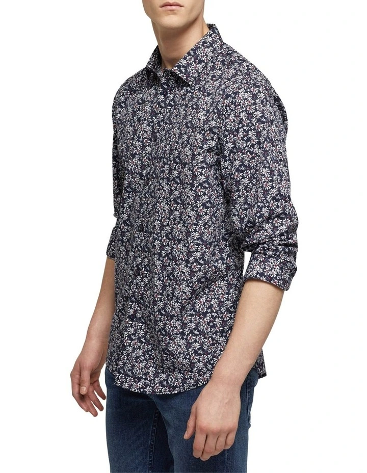 Minimal effort, maximum impact, the Kenton Floral Printed Regular Shirt will take you from work to the weekend. This slim fit shirt features a small collar and single button cuffs. Style it back with jeans and sneakers for the perfect smart casual look. Our model is wearing a size medium shirt, and usually takes a size medium. He is 185cm (61) tall with a 94cm (37) chest and 81cm (32) waist.