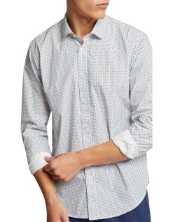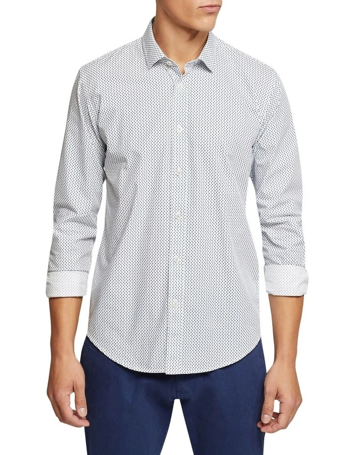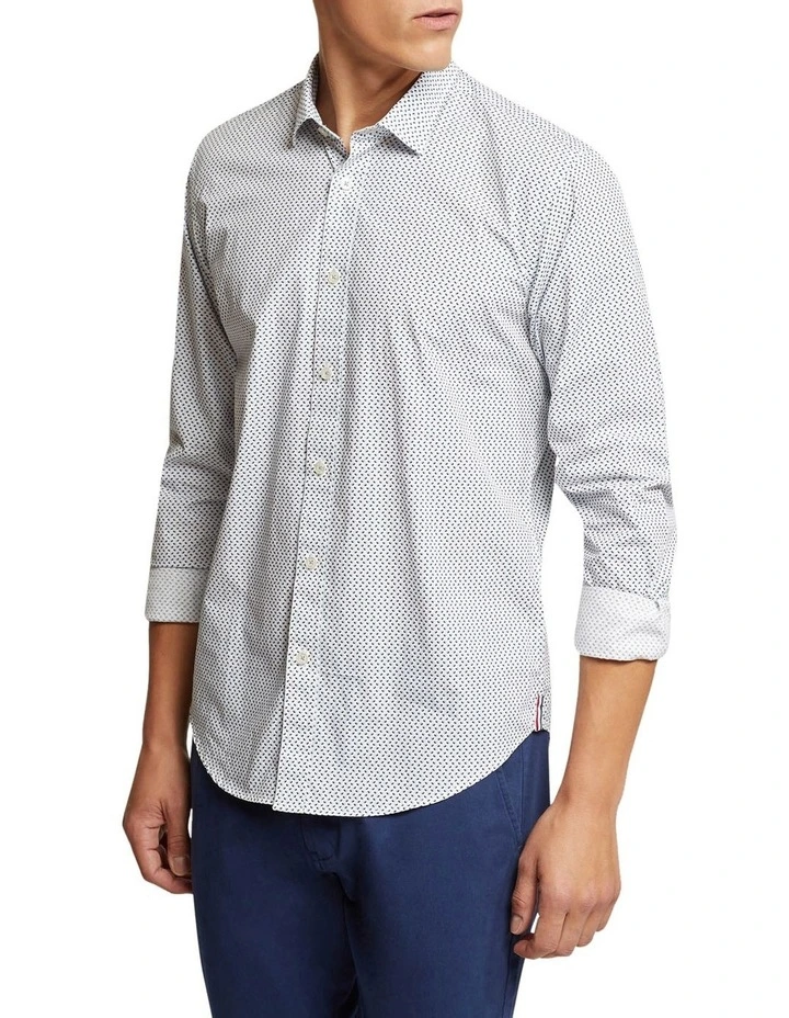 Give your smart-casual collection a fresh update with the Kenton Printed Cotton Shirt. This dependable printed shirt is crafted from 100% cotton and is cut in a modern slim fit. It features a unique spot print with a small collar and single button cuffs. Team it with a dapper blazer, chinos and leather sandals for the perfect weekend look.