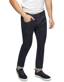 An indispensable classic, the Marty Rinse Wash Denim Jeans are a comfortable and durable choice. These dark blue jeans have a rinse wash finish and are cut with a slightly tapered leg and a hint of stretch. Wear yours with a relaxed tee or knit on the weekend or with a blazer for a smart-casual feel. Our model is wearing size 84 pants and usually takes a size 84. He is 185cm (61.75) tall with a 96.52cm (38) chest and 81cm (32) waist.