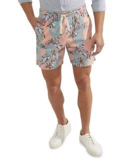 Perfect your holiday style with the Toby Linen Cotton Printed Shorts. These luxe-leisure shorts are crafted from a soft blend of linen and cotton with a classic tropical print. They feature side and back pockets, elastic waistband, and drawstring. Team them with a polo and sneakers for your pool-party look.