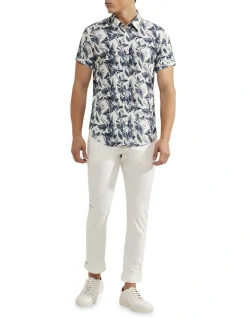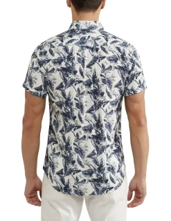 Elevate your leisurewear with the Tottenham Linen Rayon Printed Short Sleeve Shirt. This slim fit shirt is crafted from an airy linen blend with a summery tropical print and a button-down collar, Wear yours with some white chinos and sneakers for a fresh weekend look.