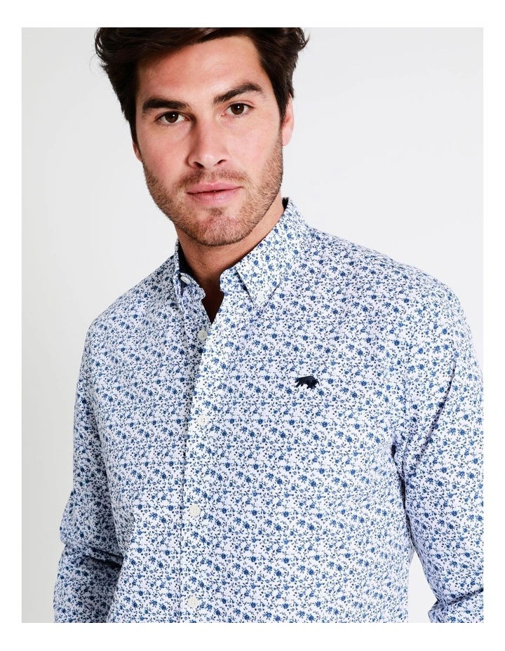 Add some style and flair to your looks this season with a light long sleeve Flower Bud Poplin Shirt. The perfect companion piece when out and about going to work or just enjoying the weather. Iconic bull logo colour contrasted on chest.