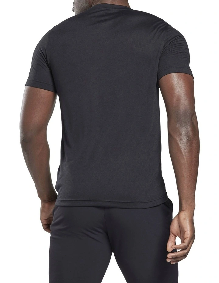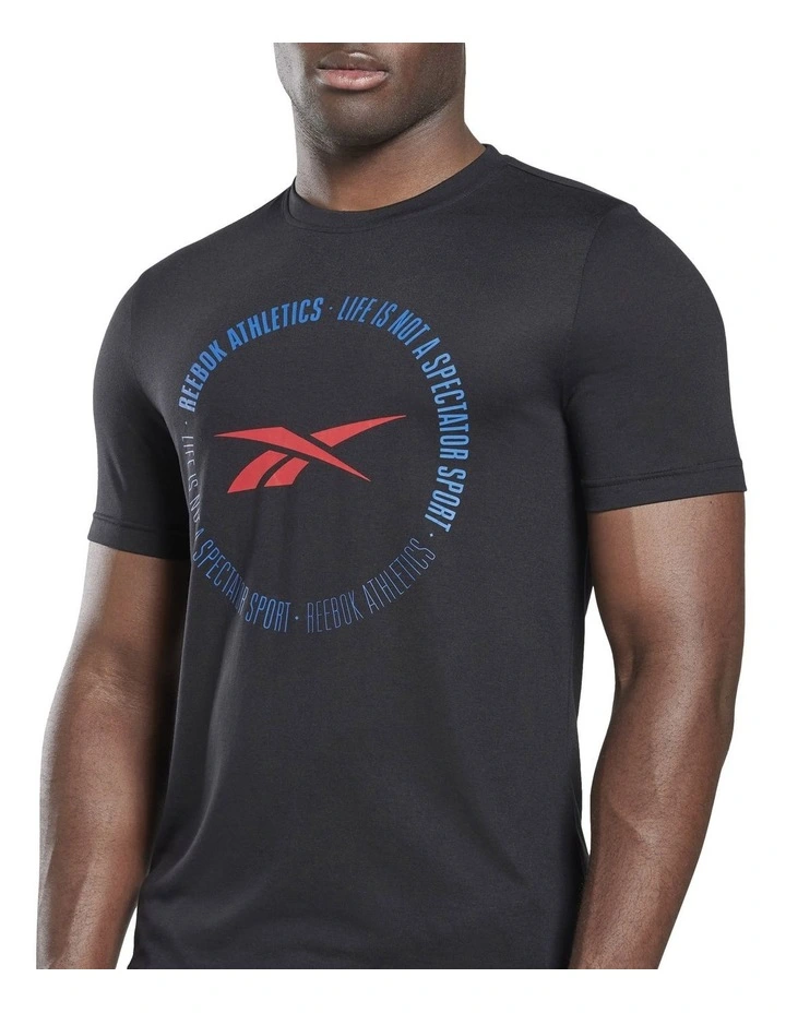 Keep your workout top of mind. This men’s training t-shirt has graphics that nod to your commitment to fitness. Speedwick fabric wicks sweat to help you stay cool and comfortable through long days on the move. The shirt is cut slim for a sleek, distraction-free feel.