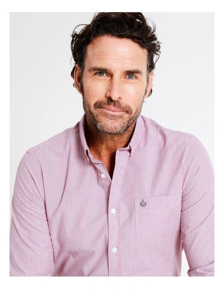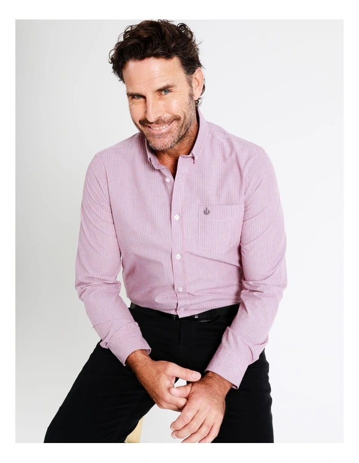 Reserve Harris Long Sleeve Stripe Shirt in Red