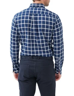 This navy gingham check long-sleeve shirt is made with soft, long-staple cotton yarns and woven in Italy with a breathable oxford weave. Its expertly appointed with a spread button-down collar, pointer logo embroidery, vintage metal buttons, and adjustable rounded barrel cuffs. Its pre-washed for smooth feel that will continue to soften with wash and wear.