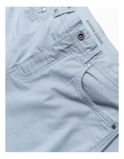 Dressier than denim jeans, this fabric version features a sophisticated micro-textured cotton, enriched with a little stretch for comfort. Cut in a flattering mid-rise and straight leg, these versatile jeans are simplistic yet smart, and broken in with a heavy garment wash.