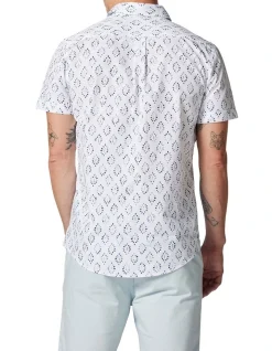 Lightweight cotton yarns make this linen shirt a breezy choice for summer days. Expertly printed in Italy with eye-catching and versatile navy and white print. Prewashed for superior softness from the word go.