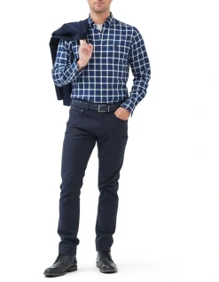 This long-sleeve shirt features a classic and adaptable navy gingham check. Crafted in soft long-staple Californian cotton yarn and woven in Italy with a breathable panama weave.