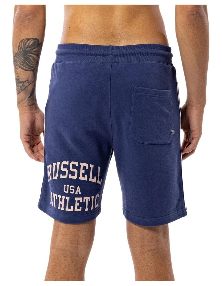 These Russell Athletic Back Team Shorts in navy are the perfect addition for your wardrobe! Featuring a regular relaxed fit, elasticized rib waistband with draw cord and a contrast Russell Athletic Collegiate Logo print down the wearers thigh.