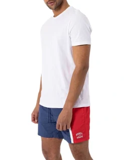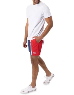 These Russell Athletic Santa Barbara Shorts in Admiral Blue are the perfect all round sport and beach short! Featuring a regular relaxed fit, tri colour design, elasticized rib waistband with draw cord and a contrast Russell Athletic Arch Logo print down the wearers thigh. These shorts are perfect for the court, gym and beach!