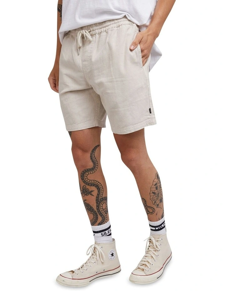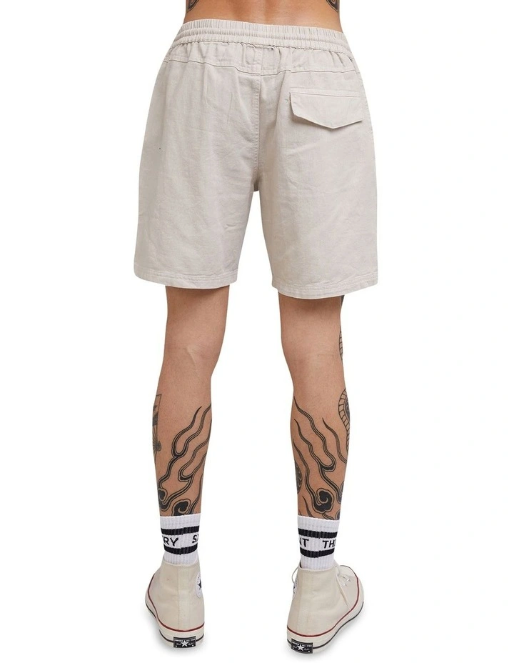 The Silent Theory Hemp Elastic Waist Short is made from hemp / cotton blend fabric with a heavy wash for soft hand feel. The short features a draw cord at waist and single back patch pocket.