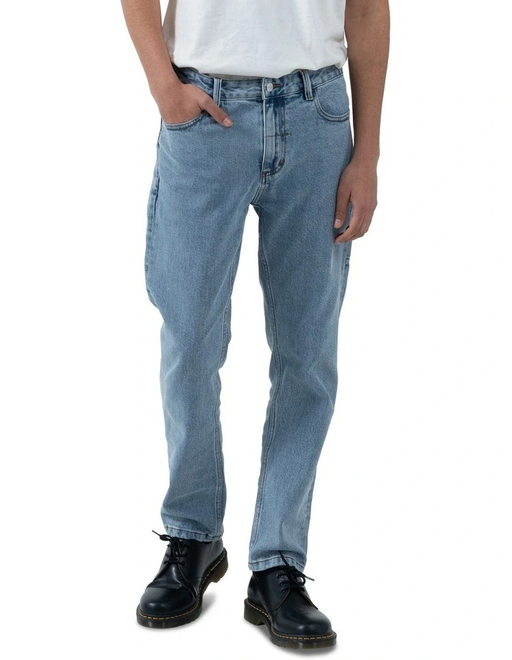 Thrills best-selling classic straight leg jean with a mid-rise crotch, now available in Garage Blue. The Bones is a go to favourite with washes built to reflect a vintage/grunge tone with 2% stretch for modern functionality.