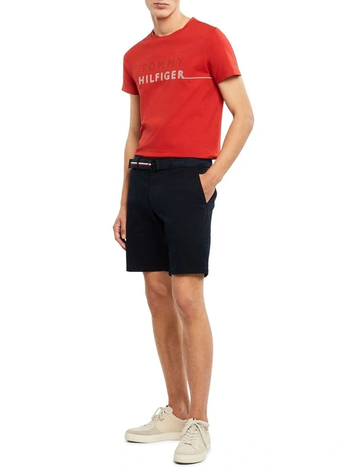 These shorts are ideal for off-duty days. Designed with a preppy edge, features included an branded embossed webbed belt, twin pockets and the Tommy Hilfiger stamp logo.