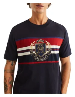 Elevate your casual looks with this statement t-shirt. Featuring a bold signature stripe finished with Tommy Hilfiger crest embroidery over the top.