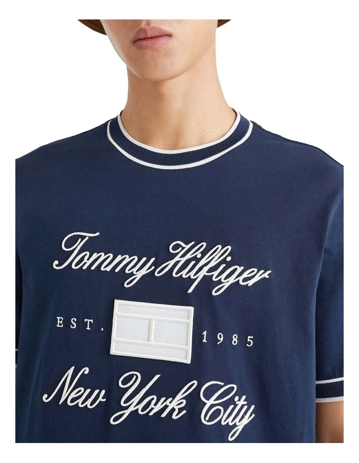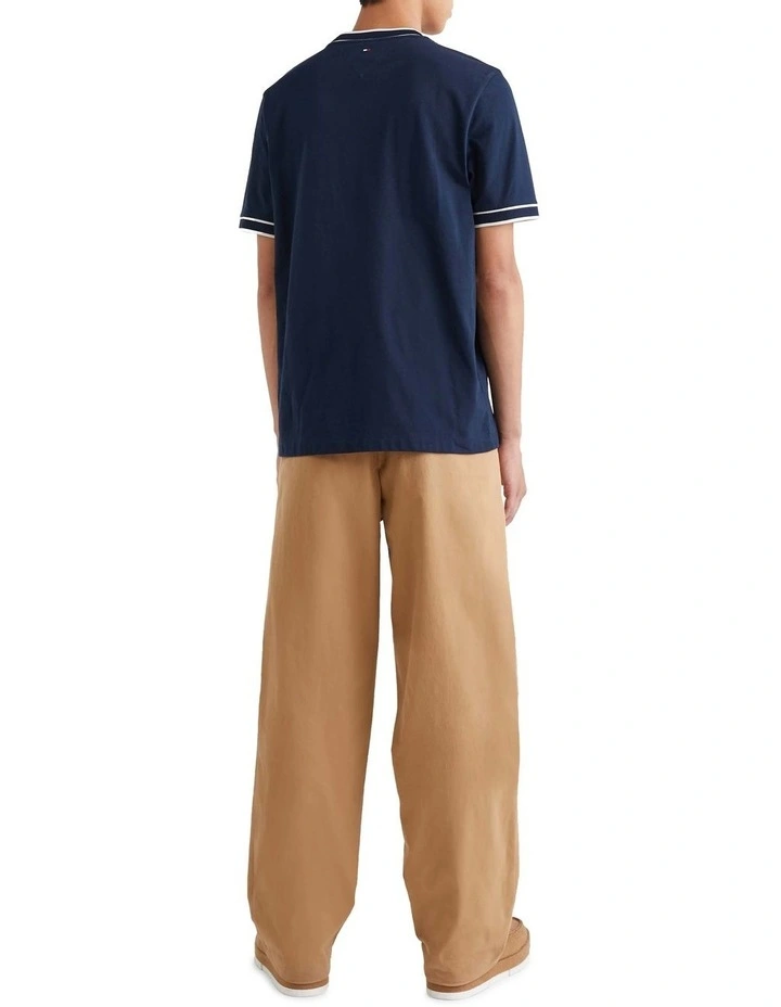 With tactile logo embroidery on the front and a textured bird’s eye trim, this branded T-shirt is a standout casual piece.Â