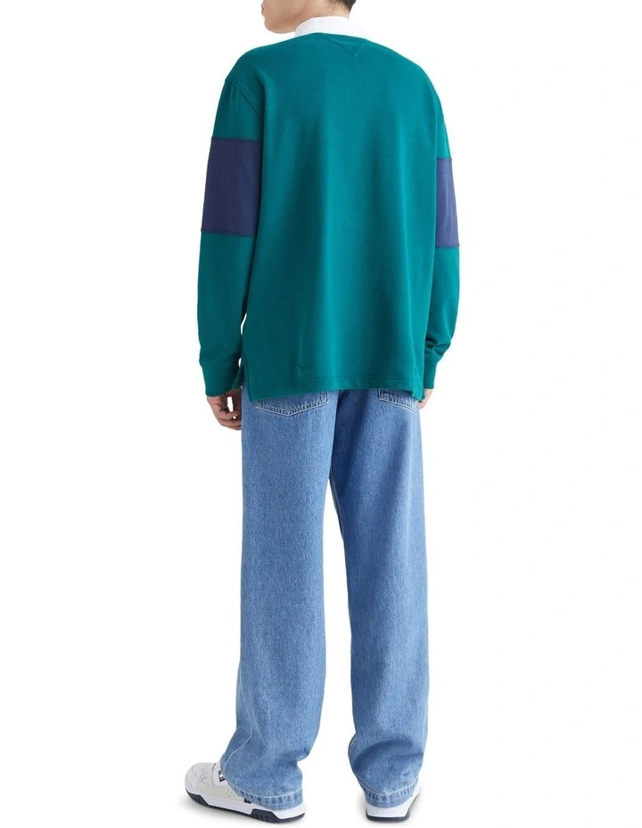 Inject an athletic feel into casual styling with this colour-blocked rugby shirt, featuring a Tommy Jeans logo emblazoned across the front.